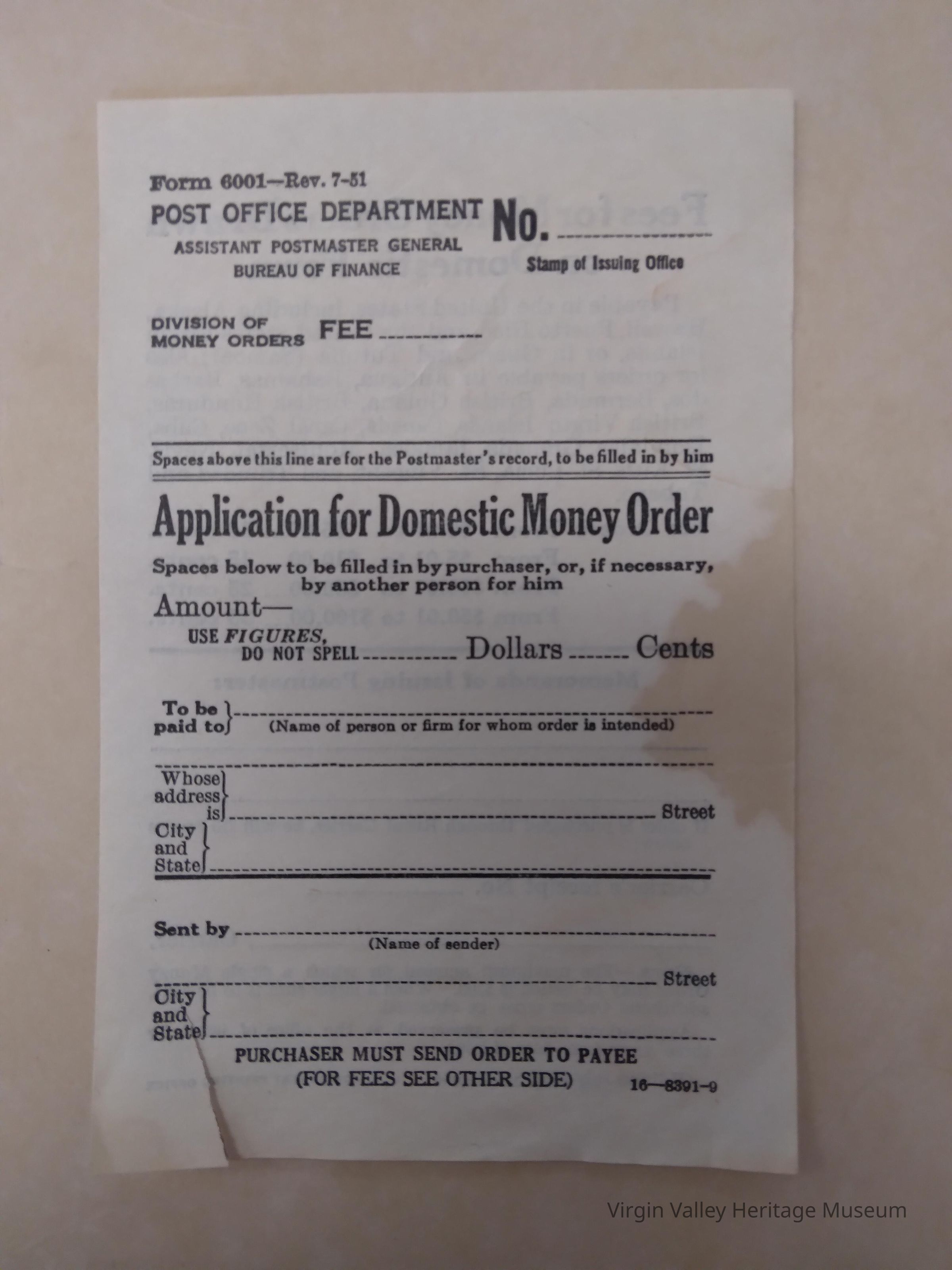 Post Office Department Money Order '51