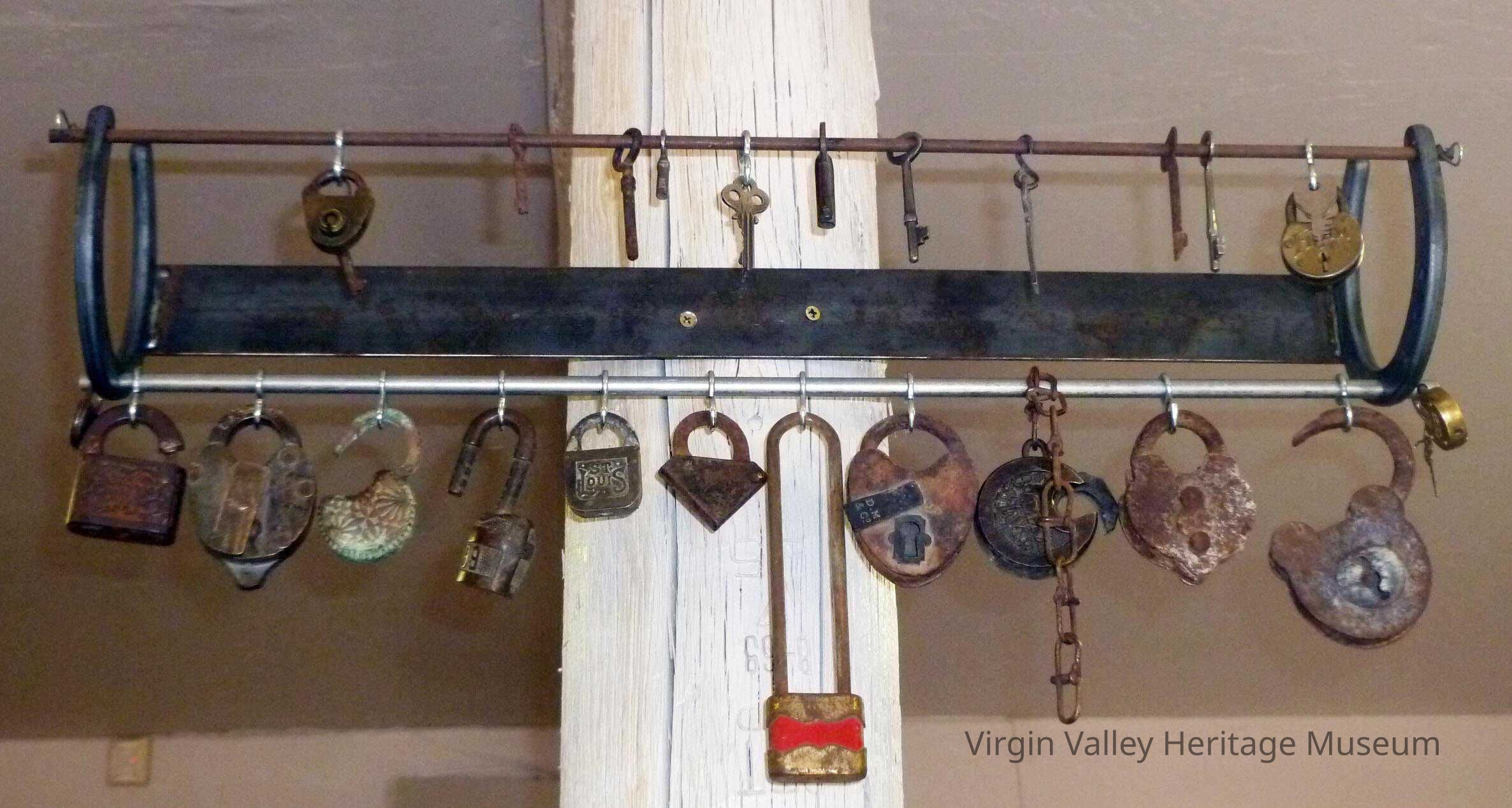 Rack made for the museum ,by Tuffy Ruth, to hold the old locks in the museum collection