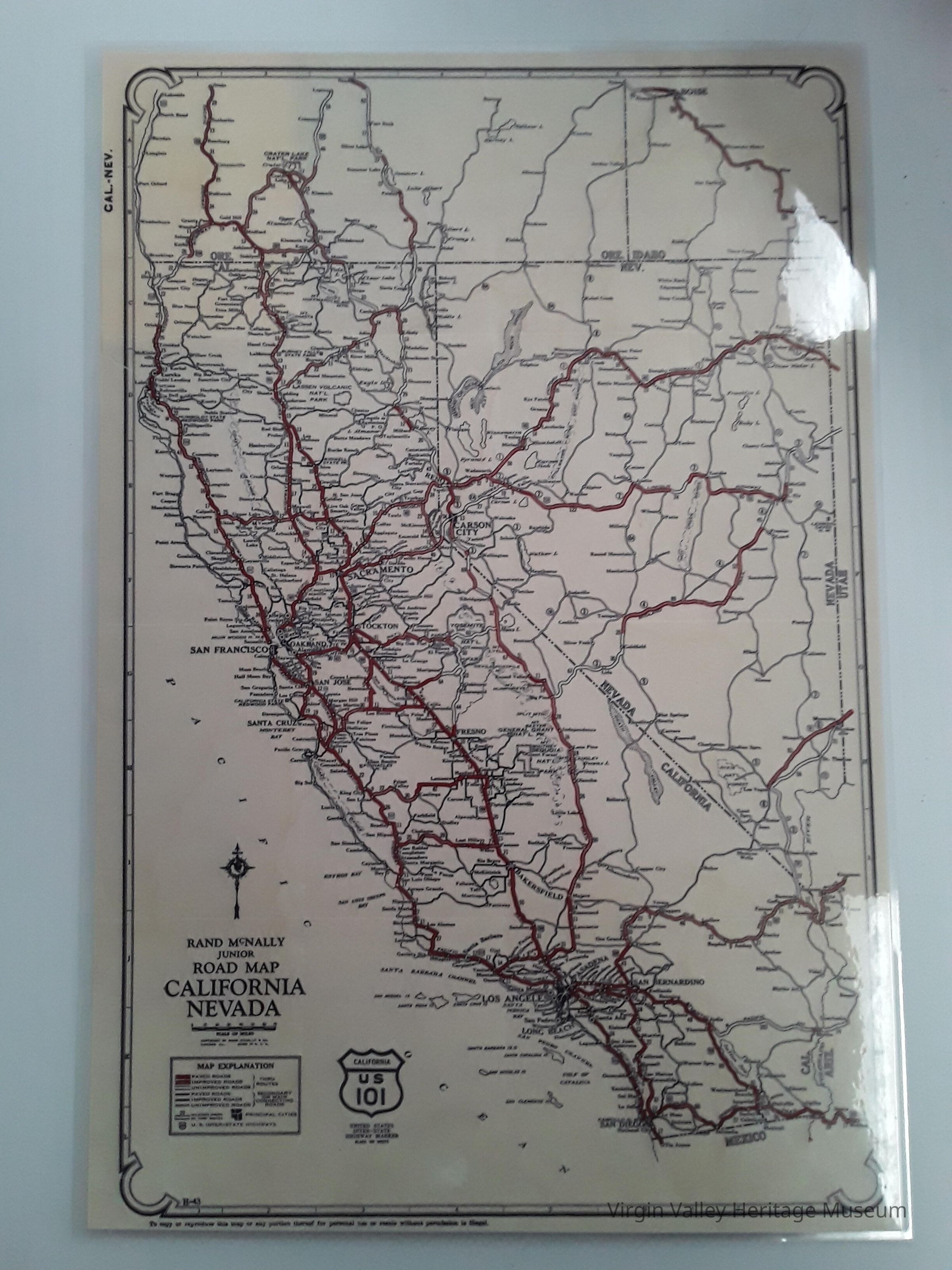 Randy Mcnally Junior Road Map California Nevada circa 1930s