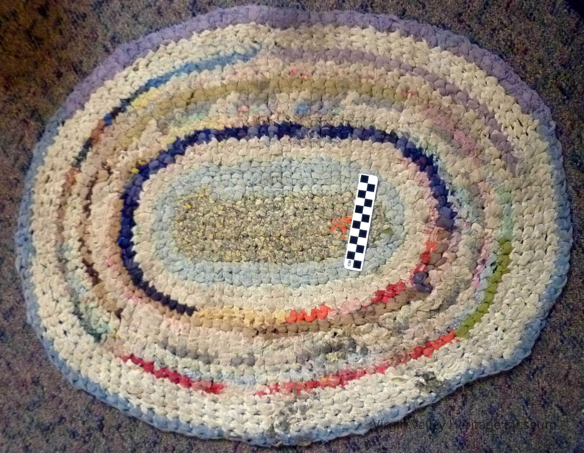 Oval rag rug made by hand from old rags (clothing)