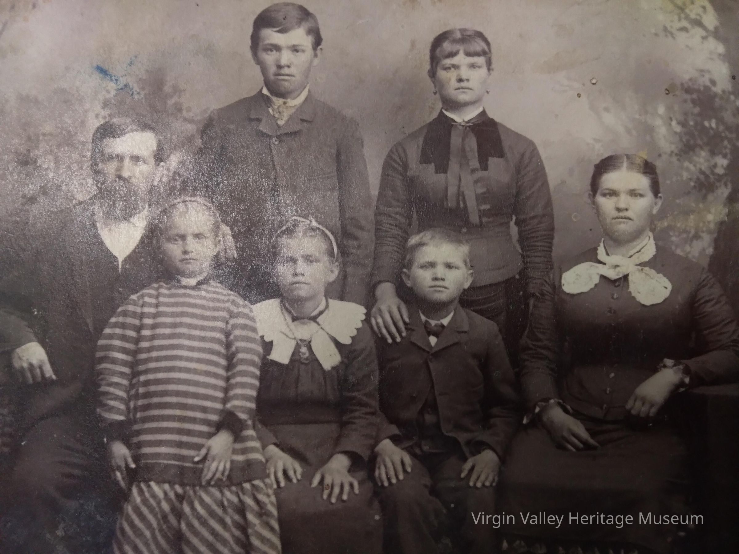 seated L-R- Samuel Reber Sr. Eliza, Otilla Lucy, Joseph Hyrum, Henrietta. Standing L-R Samuel Jr. & Matilda