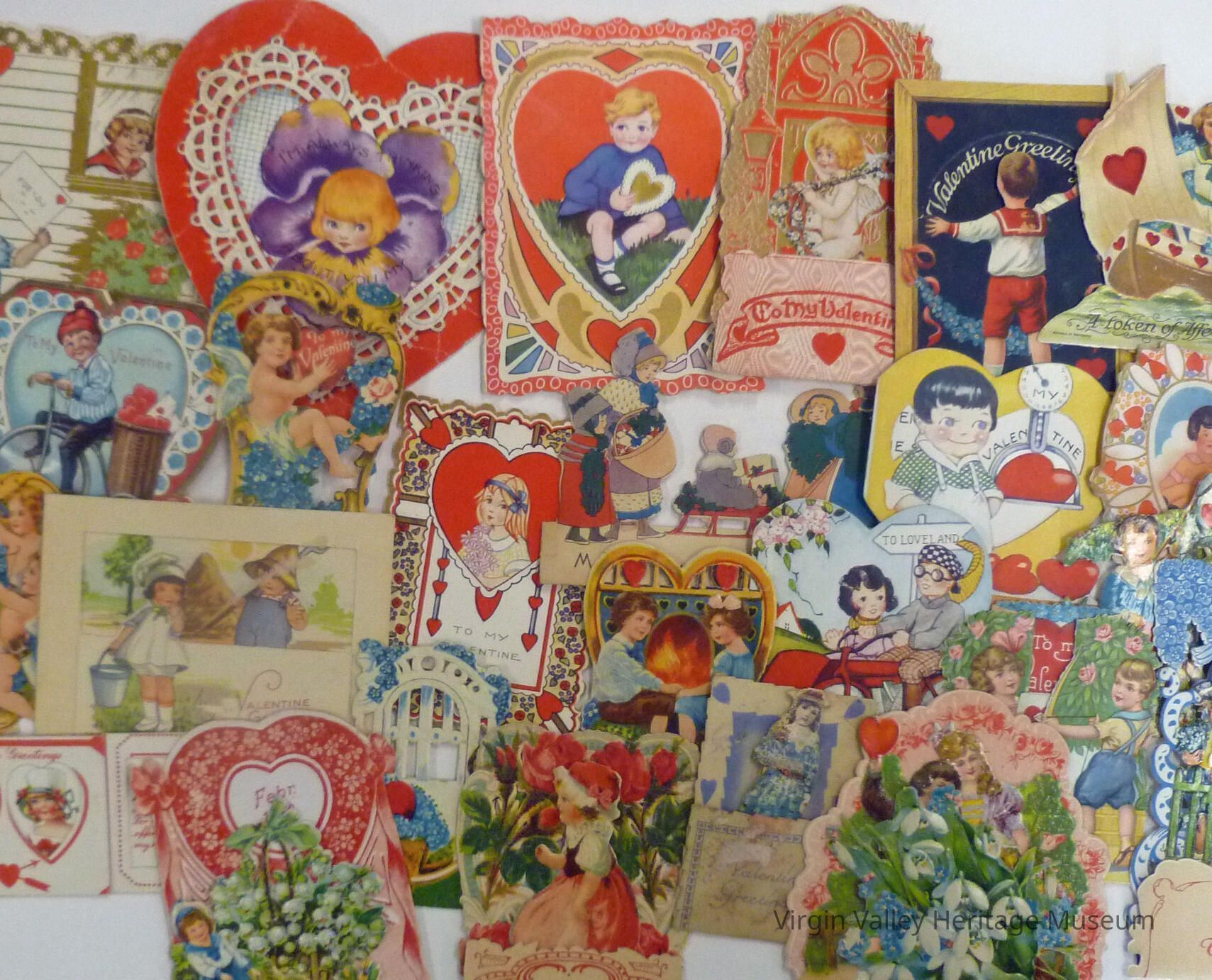 Scrapbook belonging to Nora Hughes - Valentines belonged to Nora also, the museum added them to the scrapbook to display them.