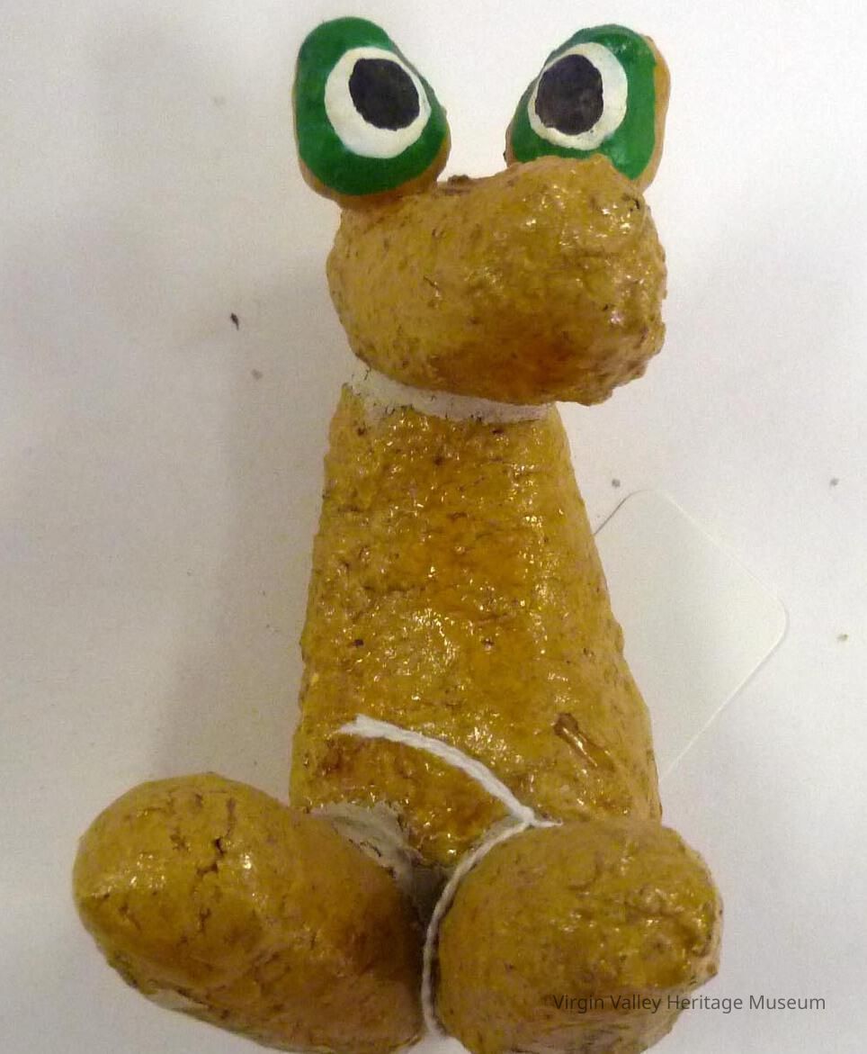 Home made sculptures (3) made with mud and sand from the Virgin River at the Riverside Motel. Bought in by Mary Lee Waters who bought the motels from Bernie Sullivan