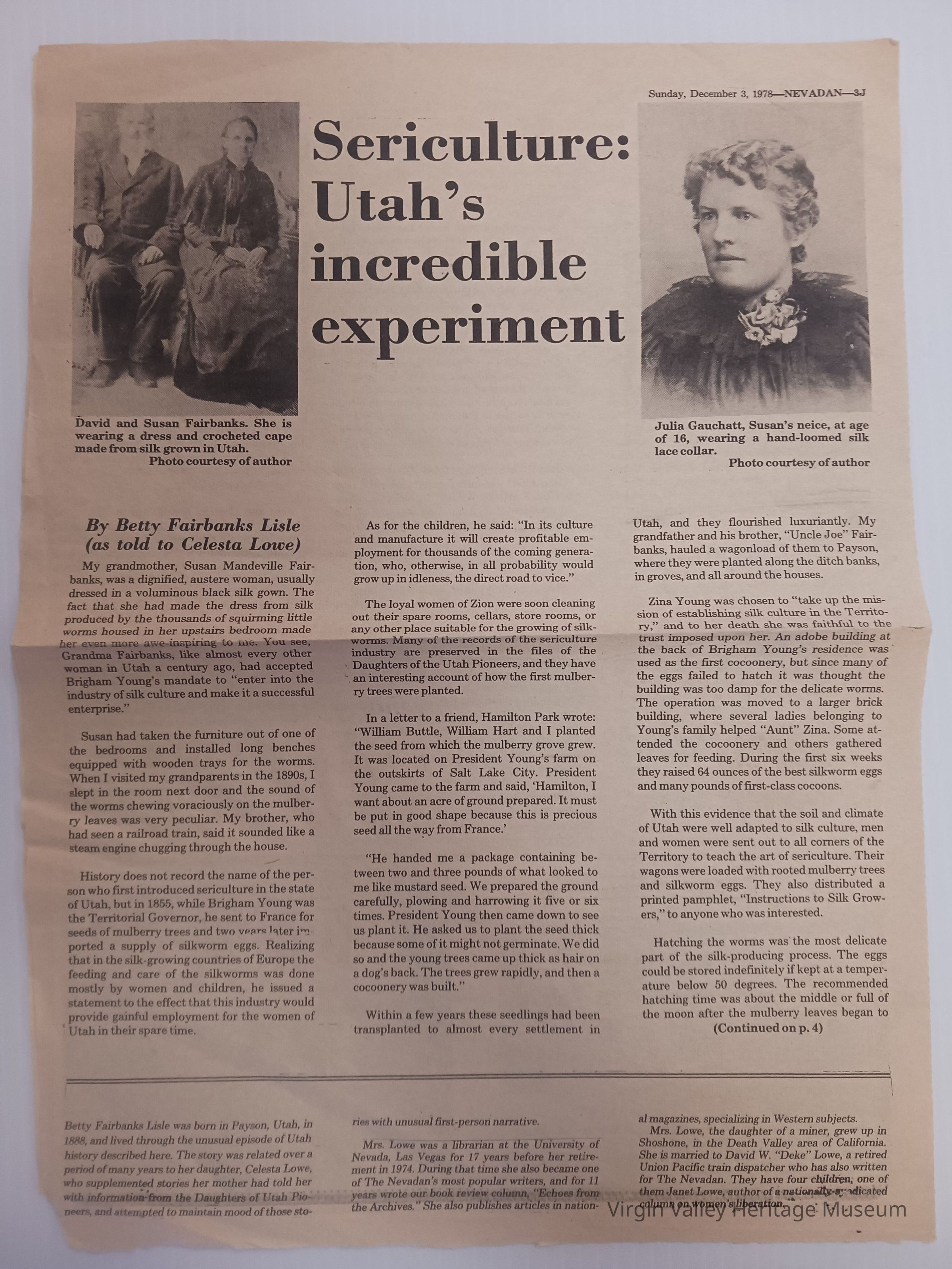Sericulture: Utah's Incredible experiment Nevadan-Sunday December 3,1978