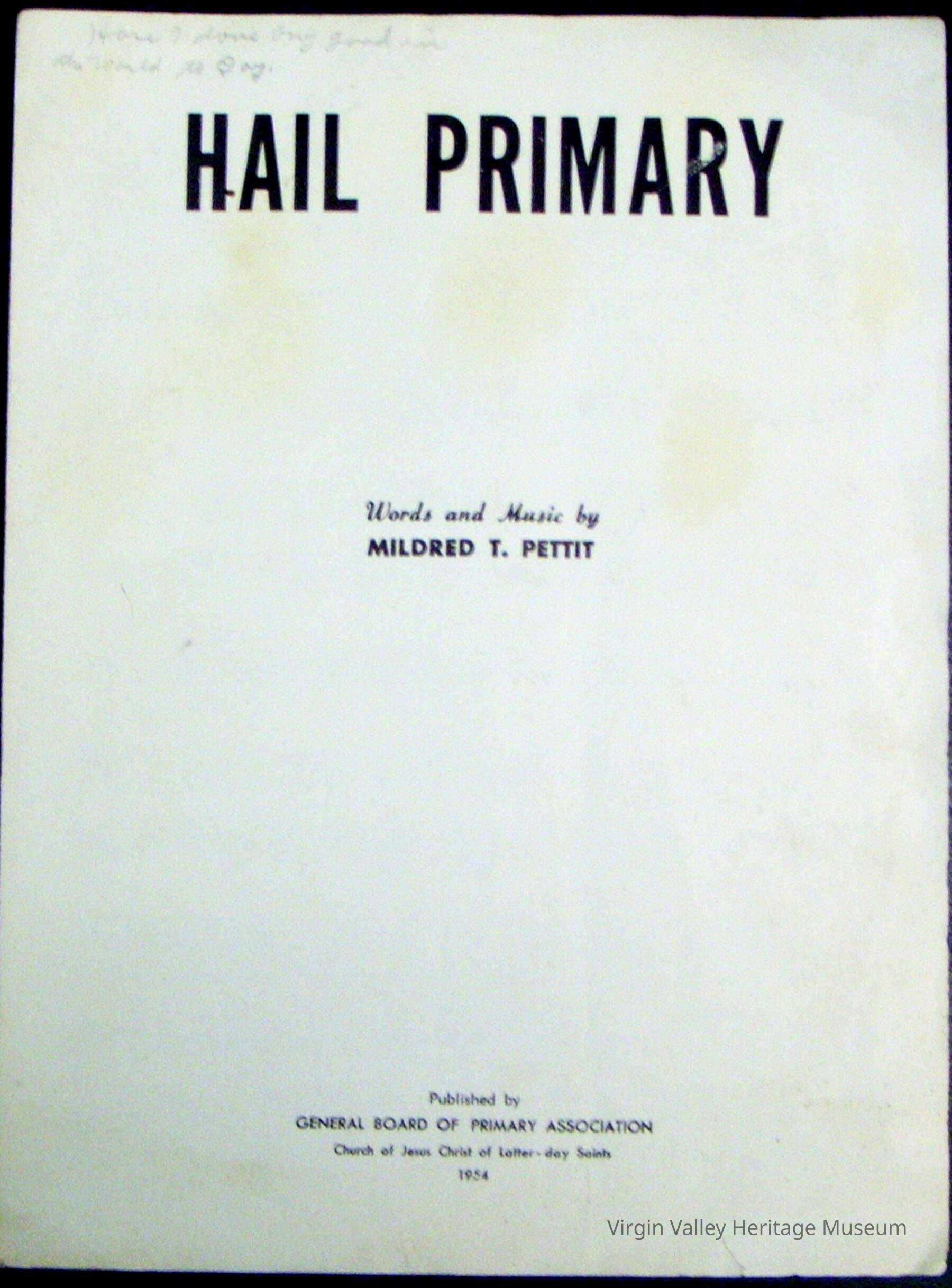 A large collection of sheet music donated by Verde and Wesley Hughes. Most of the sheet music is from the mid1900s and ranges from choral series to popular songs of the time, including That Silver-Haired Daddy of Mine and There's a Star-Spangled Banner Waving Somewhere. Music and singing were incredibly popular pastimes in the Valley, and the Valley hosted many local choirs. The full list of sheet music in this collection is listed below: