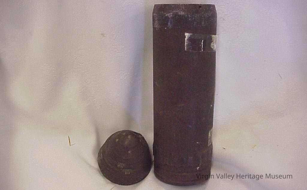 World War I Artillery Shell, Three Inch, and Corrector. Picked up by Howard Pulsipher after some training fire.