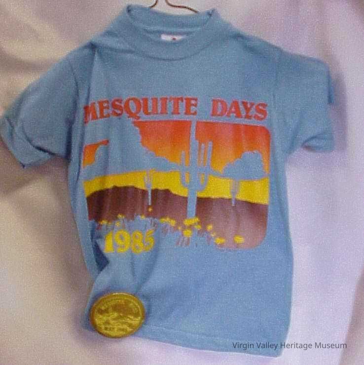 Mesquite Days T Shirt and Badge 1985