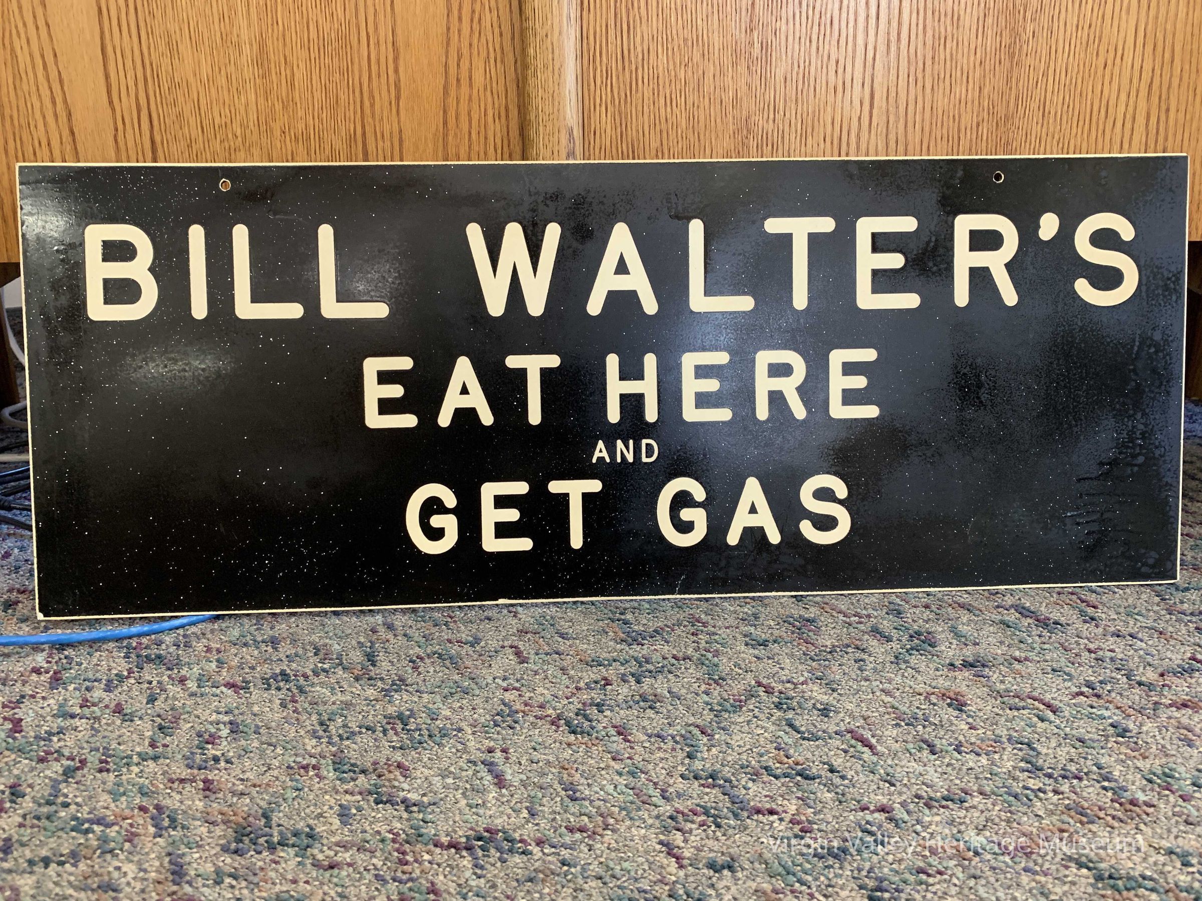 sign from a store that was a gas station, restaurant, bar and petting zoo located in Beaver Dam. "Bill Walters eat here and get gas"