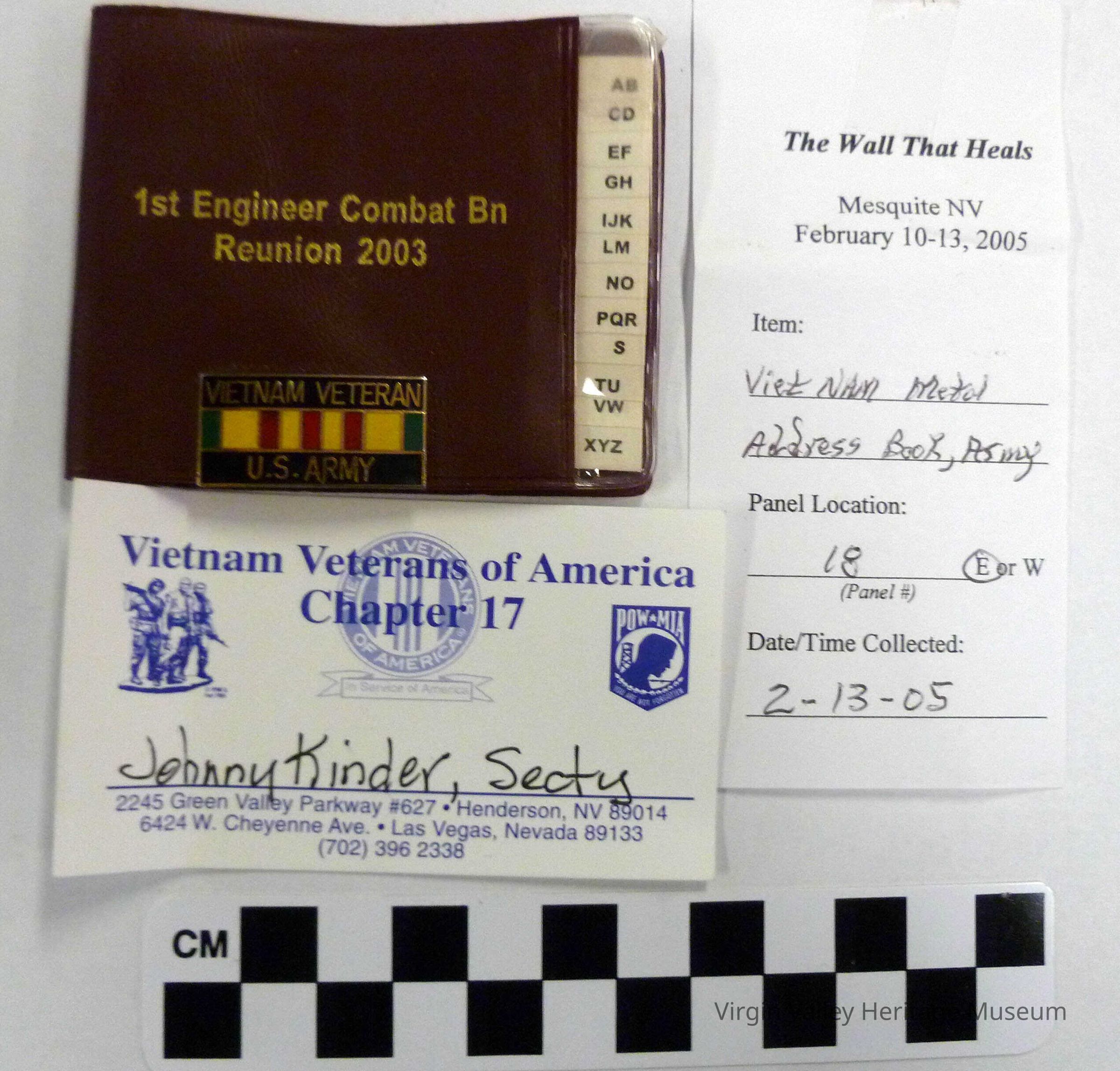 1st Engineer Combat Bn Reunion 2003 - address book and metal
