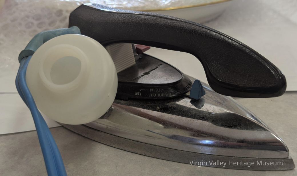 Spray Steam & Dry Travel Iron. Water was put into the well on the side, there was a lid with a spay pump (that is missing), The well detaches from the iron so it will fit into the box.