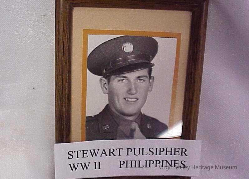 A picture of Stewart Pulsipher, who joined the Army in 1944. Stewart was deployed to the Philippines in 1945 and served there for a year and a half. Stewart was the son of Myrtle and Howard Pulsipher, who also served in the military.