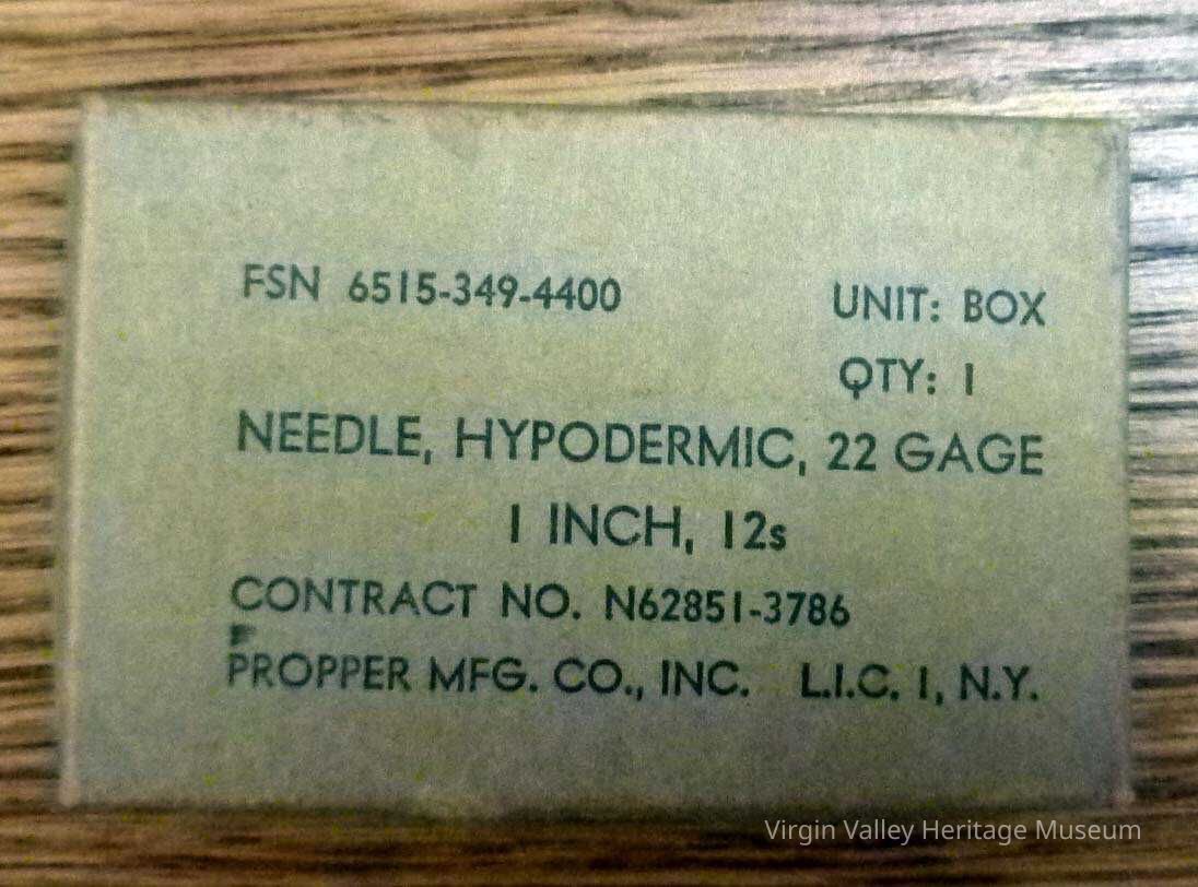 Syringes with needles Made by B-D Yale Luer-Lok Becton, Dickinson & Co. Box of Hypodermic Needles, 22 Gage 1 inch, 12 Propper MFG. Co., INC