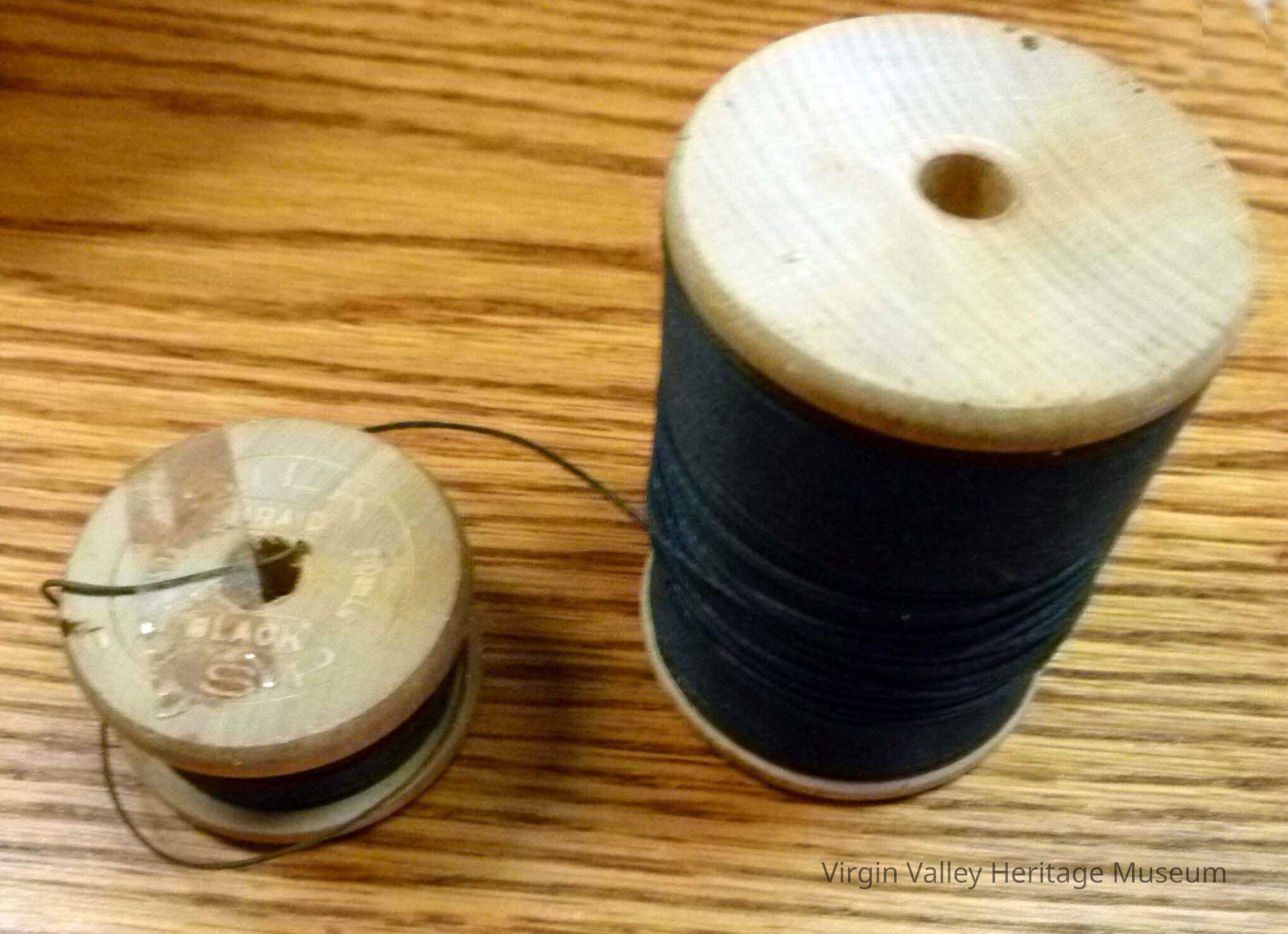 Two spools of black heavy thread.