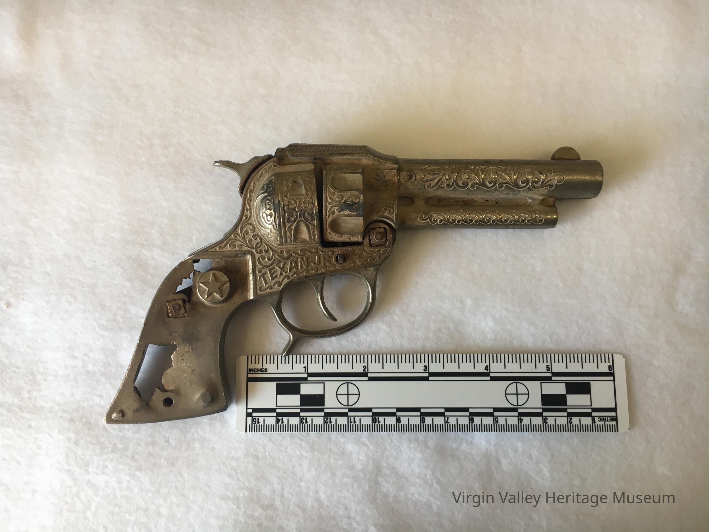 A toy cap gun found in the Virgin Mountains.