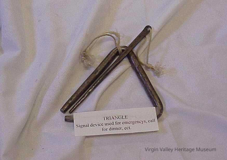 Triangle used call for dinner or in an emergency. Also used as a musical instrument Donated to the museum in 1989