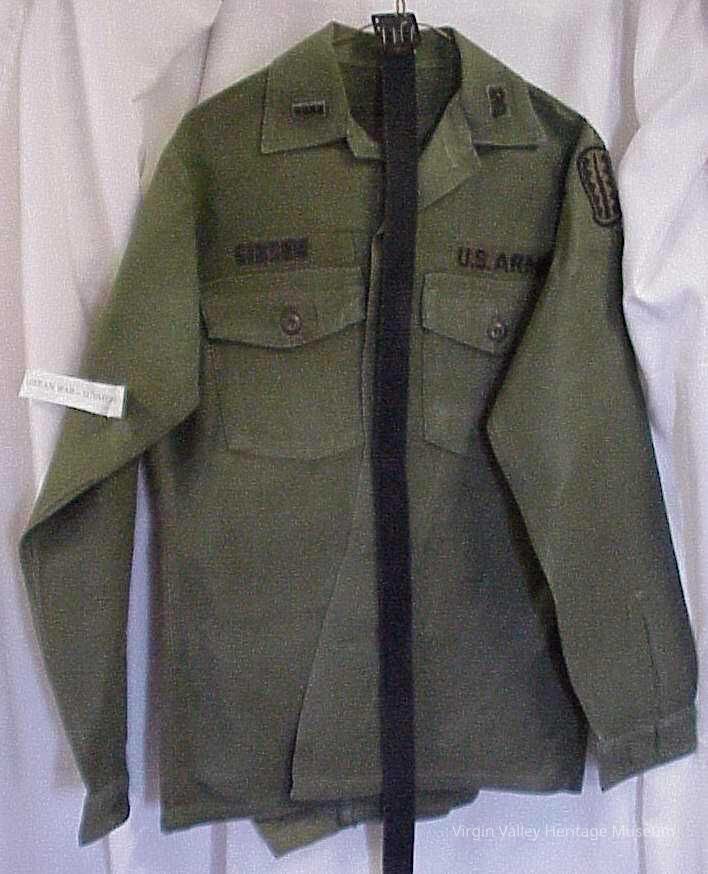 Korean War era fatigue army uniform. Worn by Wesley E. Gibson