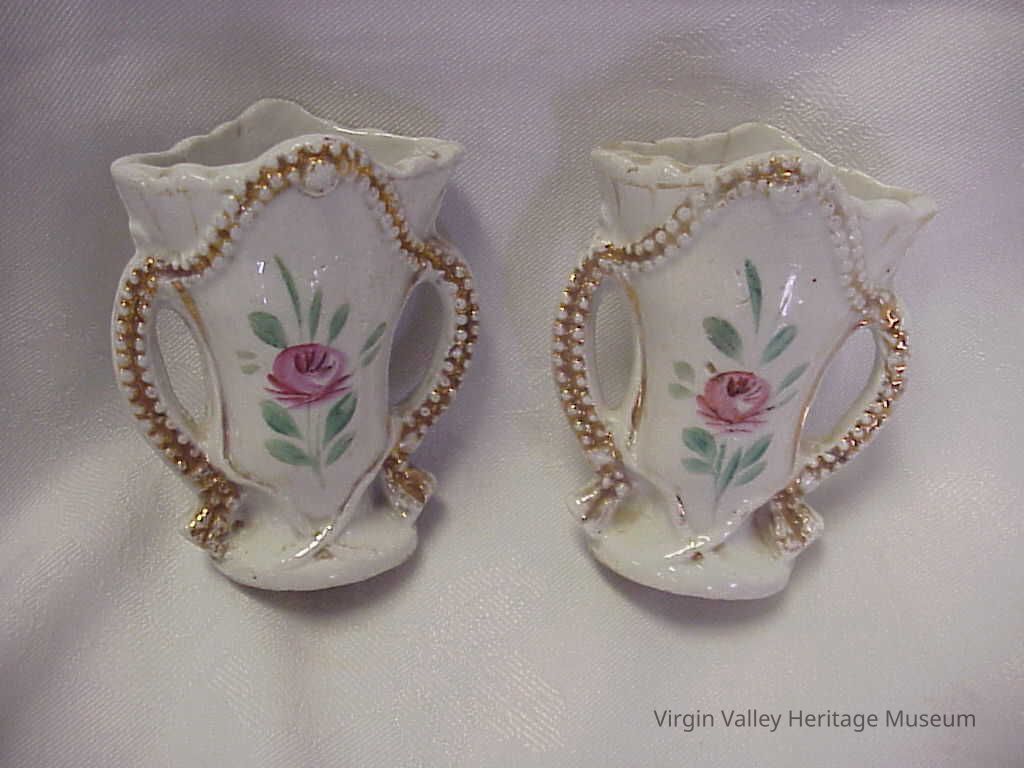 2 small vase's given to Emma C. G. Abbott by two of her students. Zylpha Hughes and Elmer Hughes or Sylvan and Dessie Hughes.