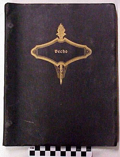 A yearbook for the 1937-1938 school year that belonged to Caroline Reber, who was a junior. At the time, each homemade yearbook was individually typed and pictures were manually glued to the pages.