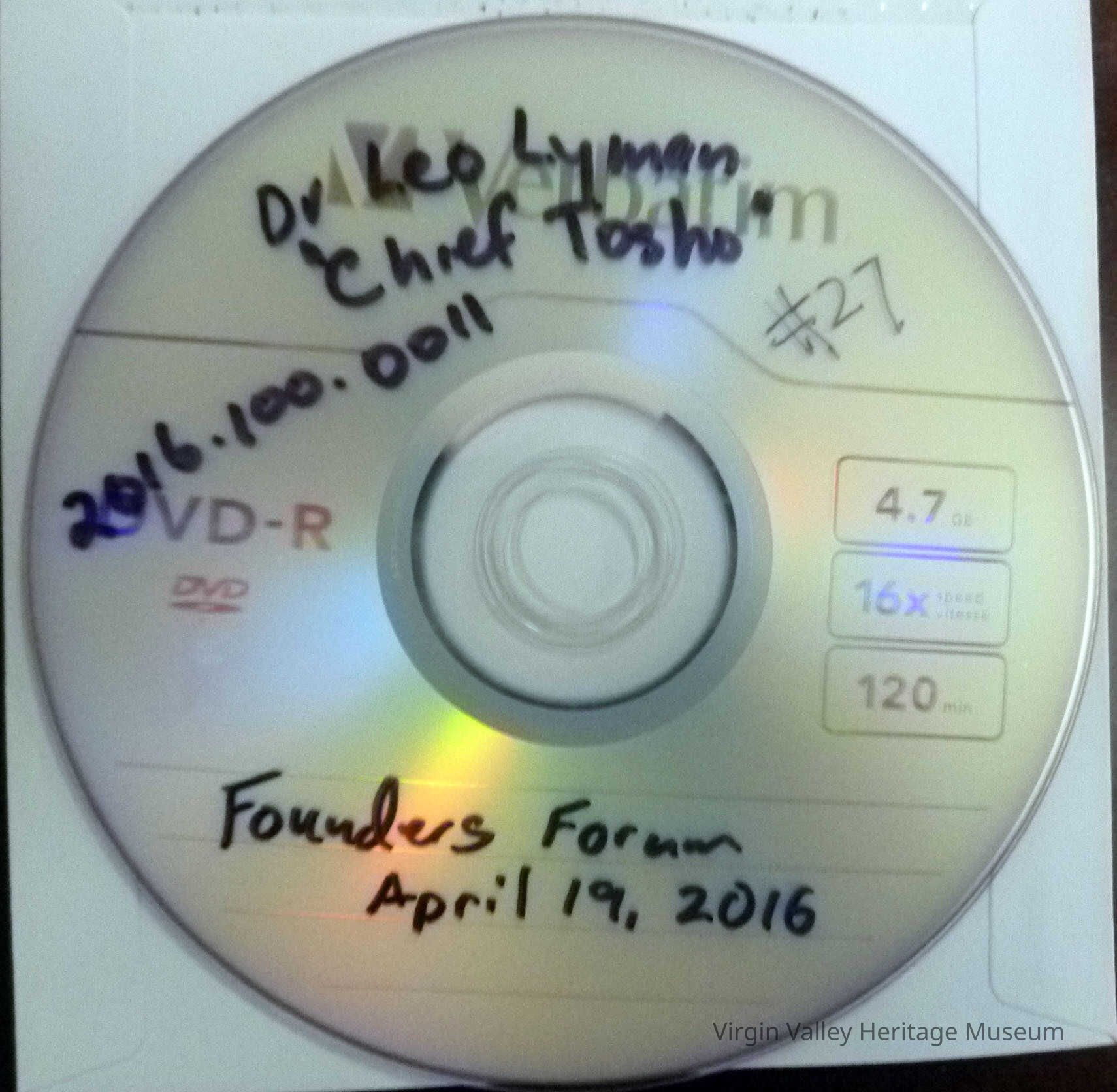 Video copy of lecture by Dr.Leo Lyman on Chief Tosho and the tenuous coperation between early anglo settlers and the Paiute tribes. Founders Forum 26