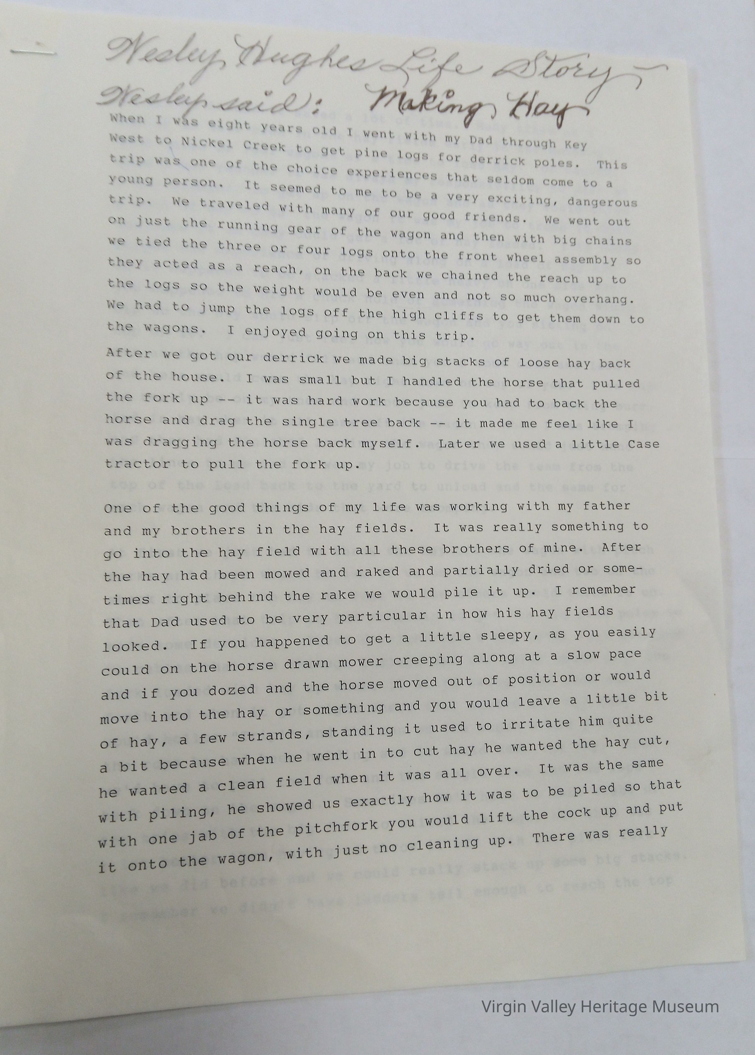 Wesley Hughes Life Story