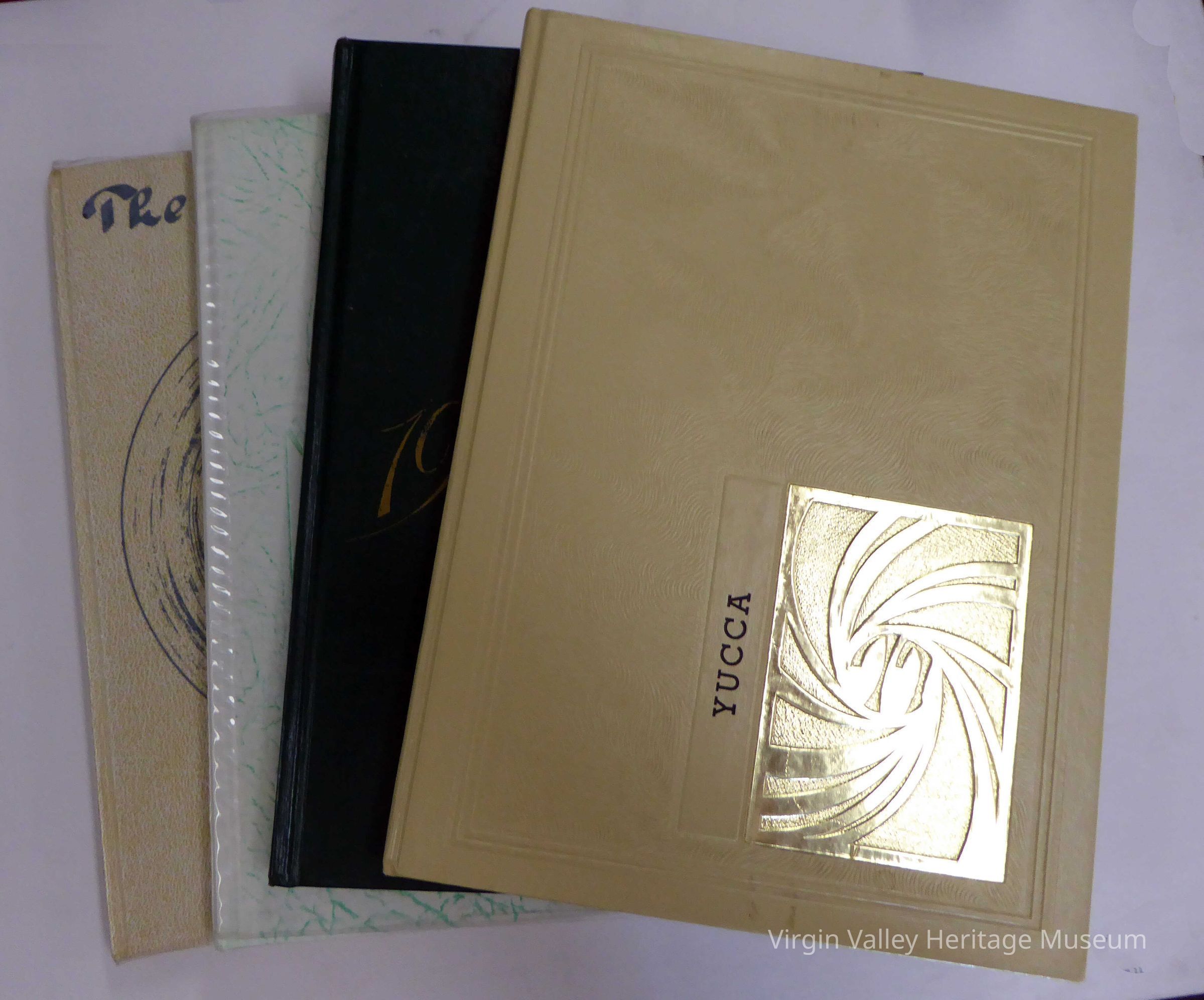4 Yucca Yearbooks. Dating 1977,1978,1981 and 1982. Donated by Ann Taylor who with her husband at the time were Yearbook staff advisors.