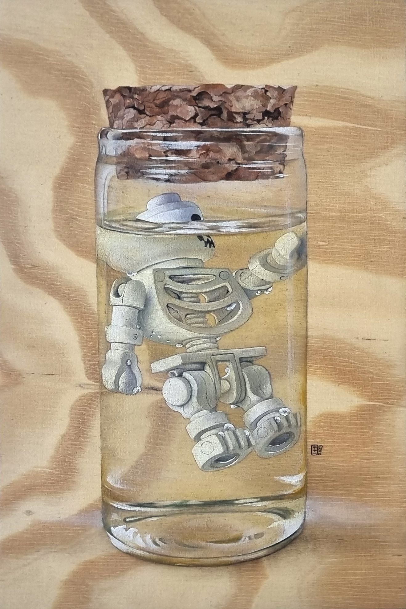LEGO skeleton in a bottle filled with a clear liquid with a corkArtwork Details