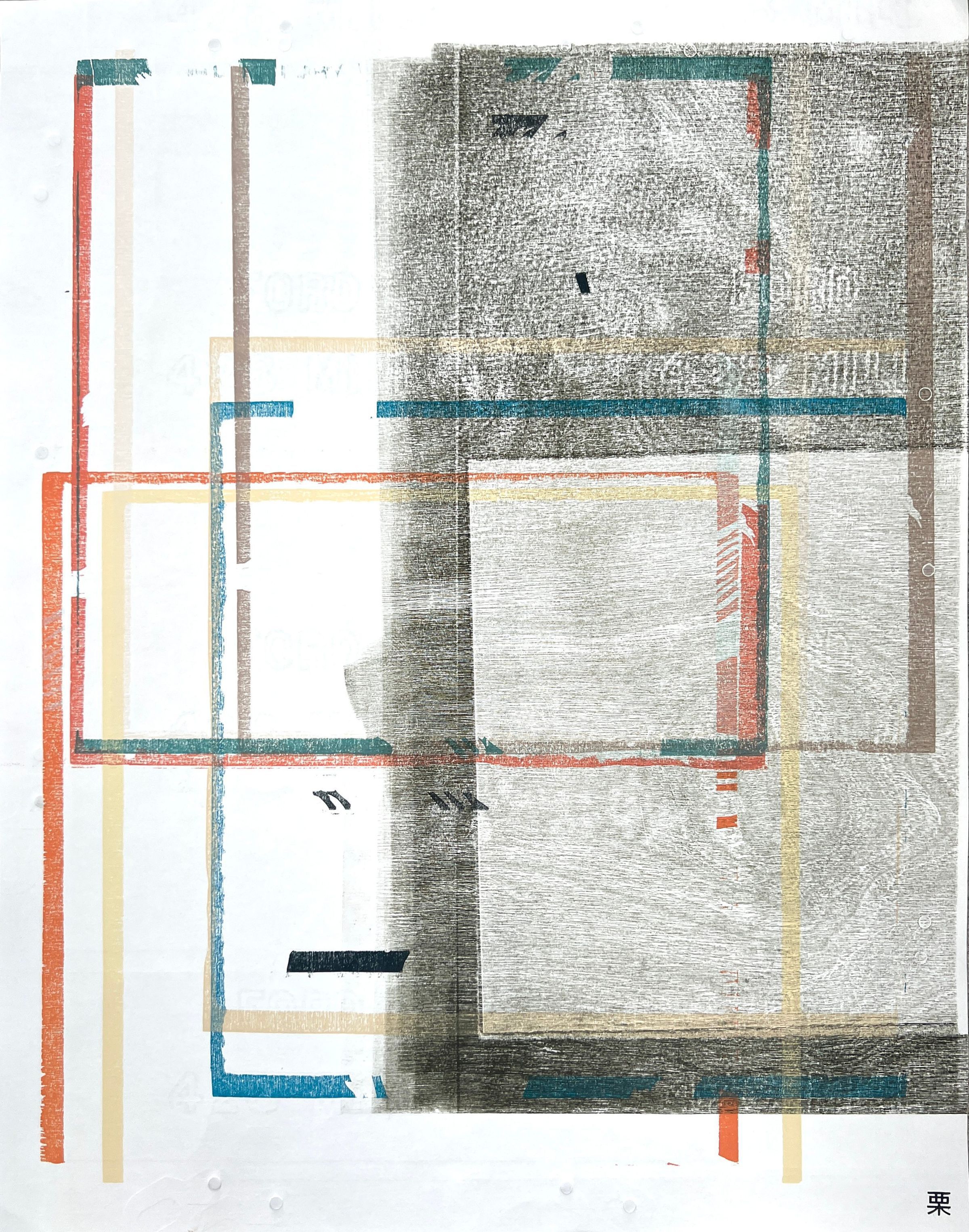 Multiple layer monotype woodblock print on archival blotting paper 140gsm