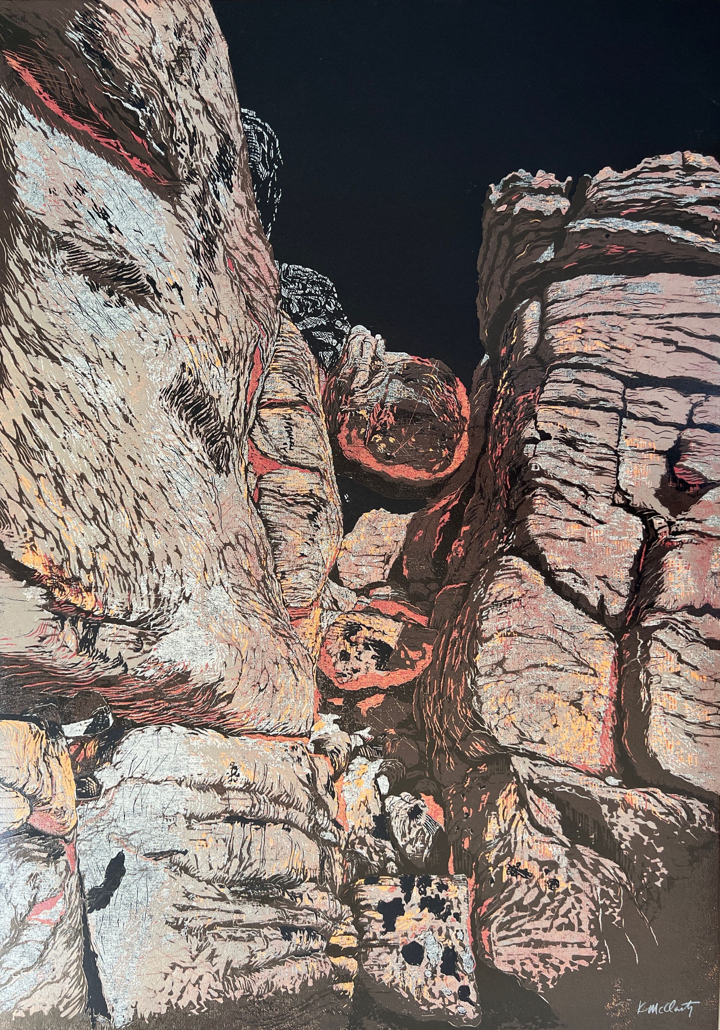 Reduction woodblock print on Fabriano Elle Erre Black 160 gsm