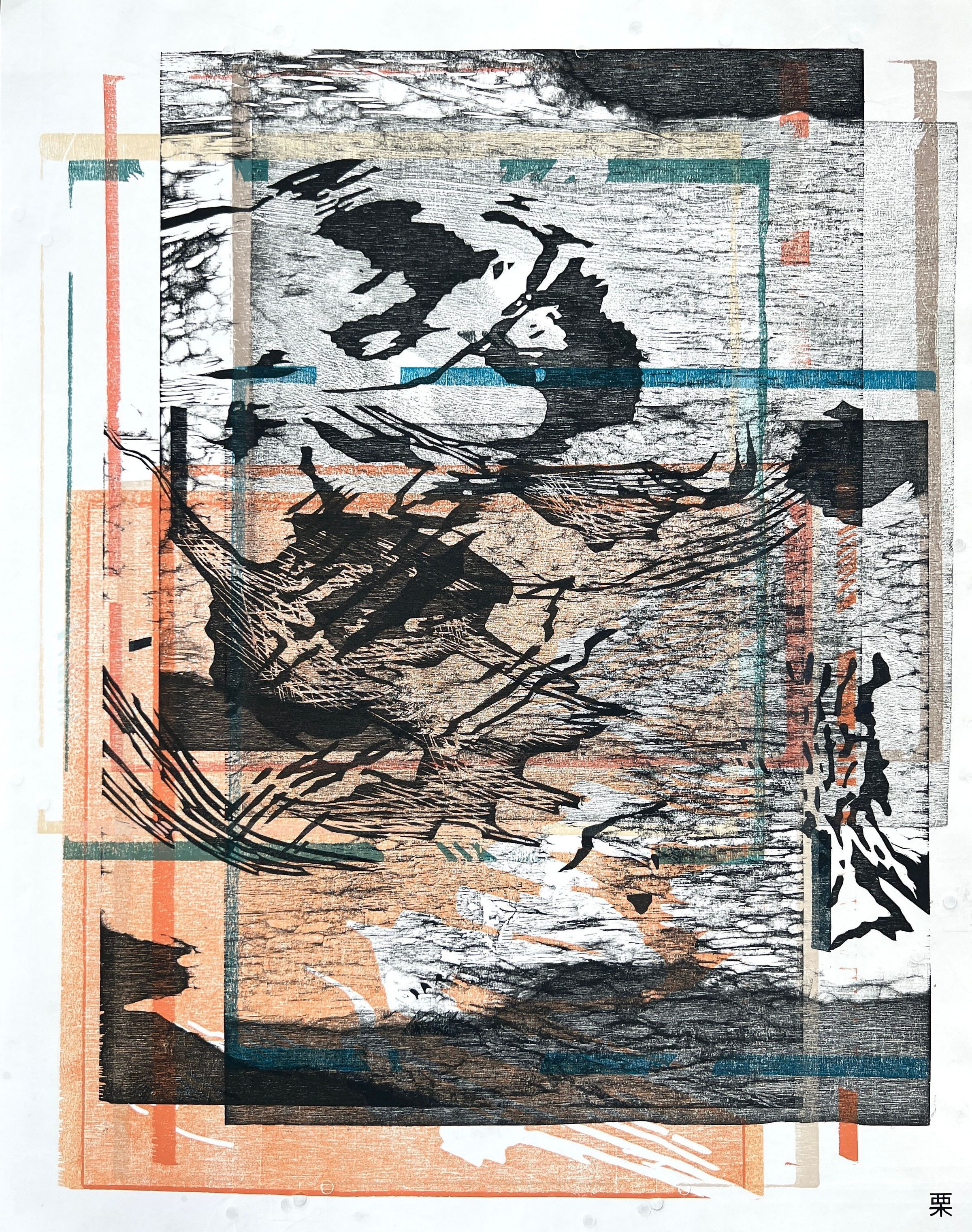 Multiple layer monotype woodblock print on archival blotting paper 140gsm