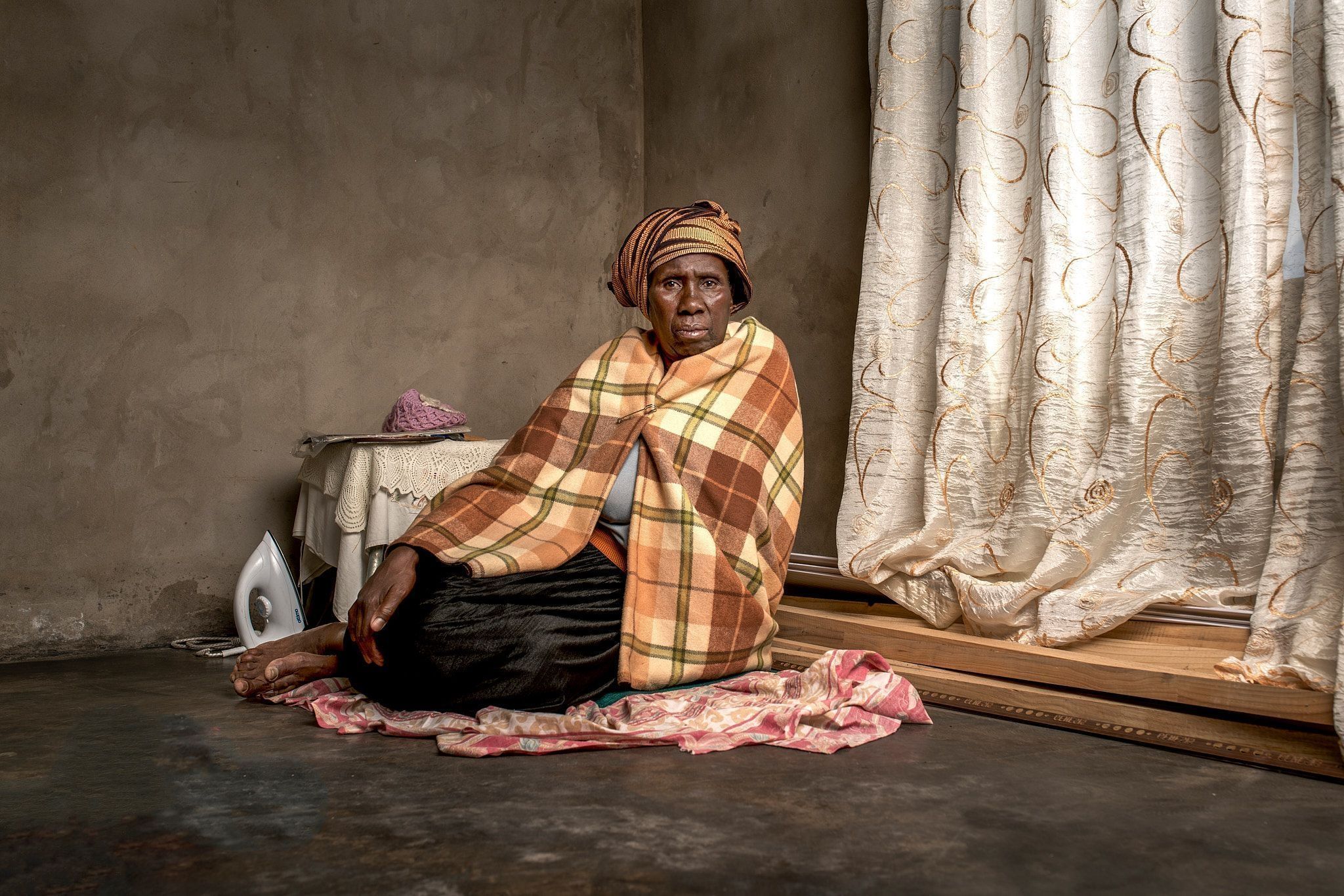 Makatleho Selibo is the Widow of Mahola Selibo who worked as a team leader at President Steyn mine in Welkom. He worked underground for 33 years. He passed away in 2013 and suffered from tuberculosis and silicosis. He did not receive any compensation from the mines. On the weekends at the mines he would run a shoe repair business, fixing the broken soles of his colleagues; shoes. Mr and Mrs Selibo had four children and she now survives on subsistence farming and livestock.Edition