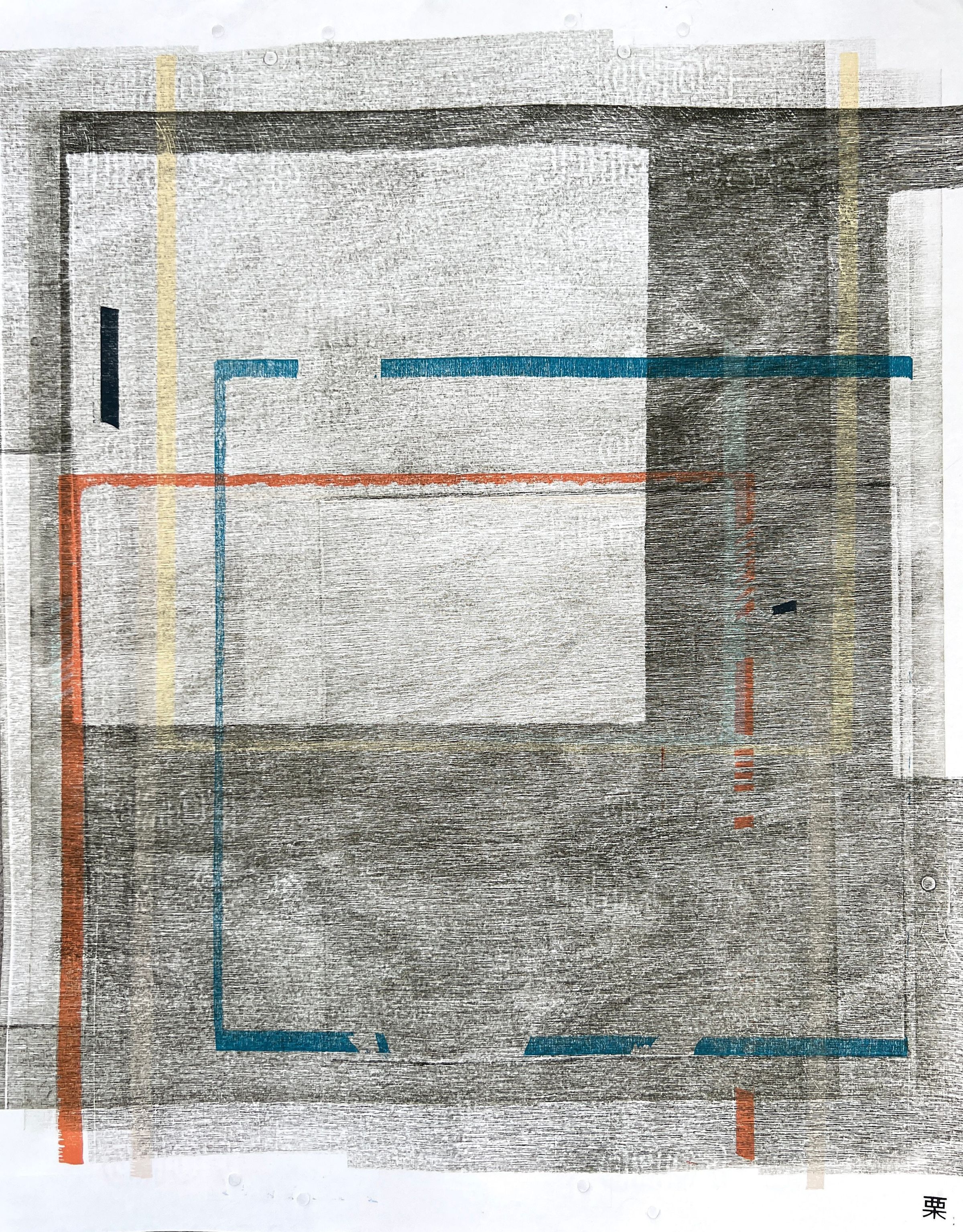 Multiple layer monotype woodblock print on archival blotting paper 140gsm