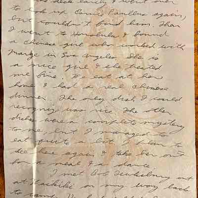 Letter is one page and written on only one side. There is a watermark on the page depicting a hula dancer.