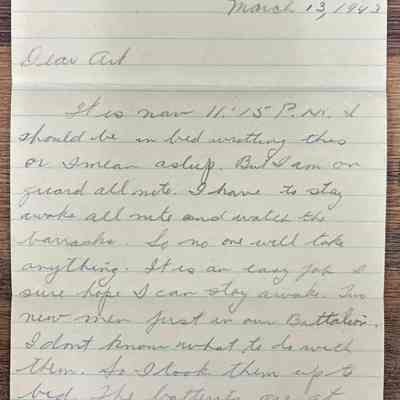 Letter - Pfc. John C. Schmalzried to Arthur Haupert (Mar. 13, 1943)
