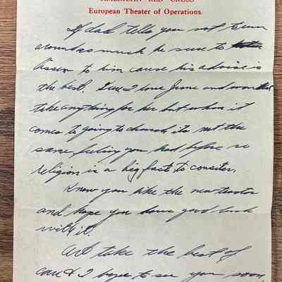 The letter stationary has a header showing in red a C47 towing a glider plane and underneath it reads: American Red Cross, European Theater of Operations