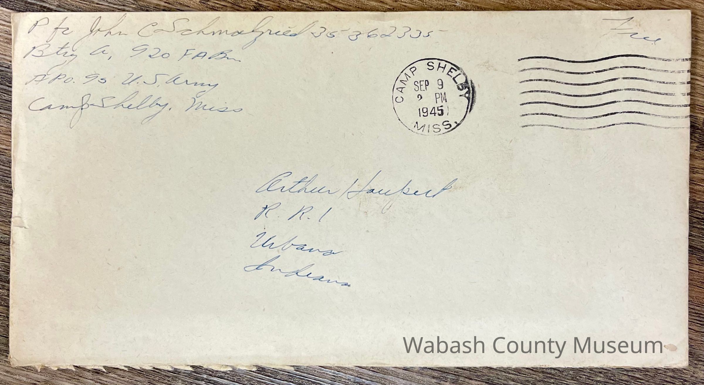 Letter - Pvt. John C. Schmalzried (35362335) to Arthur Haupert (Sep. 8, 1945)Entry/Object ID