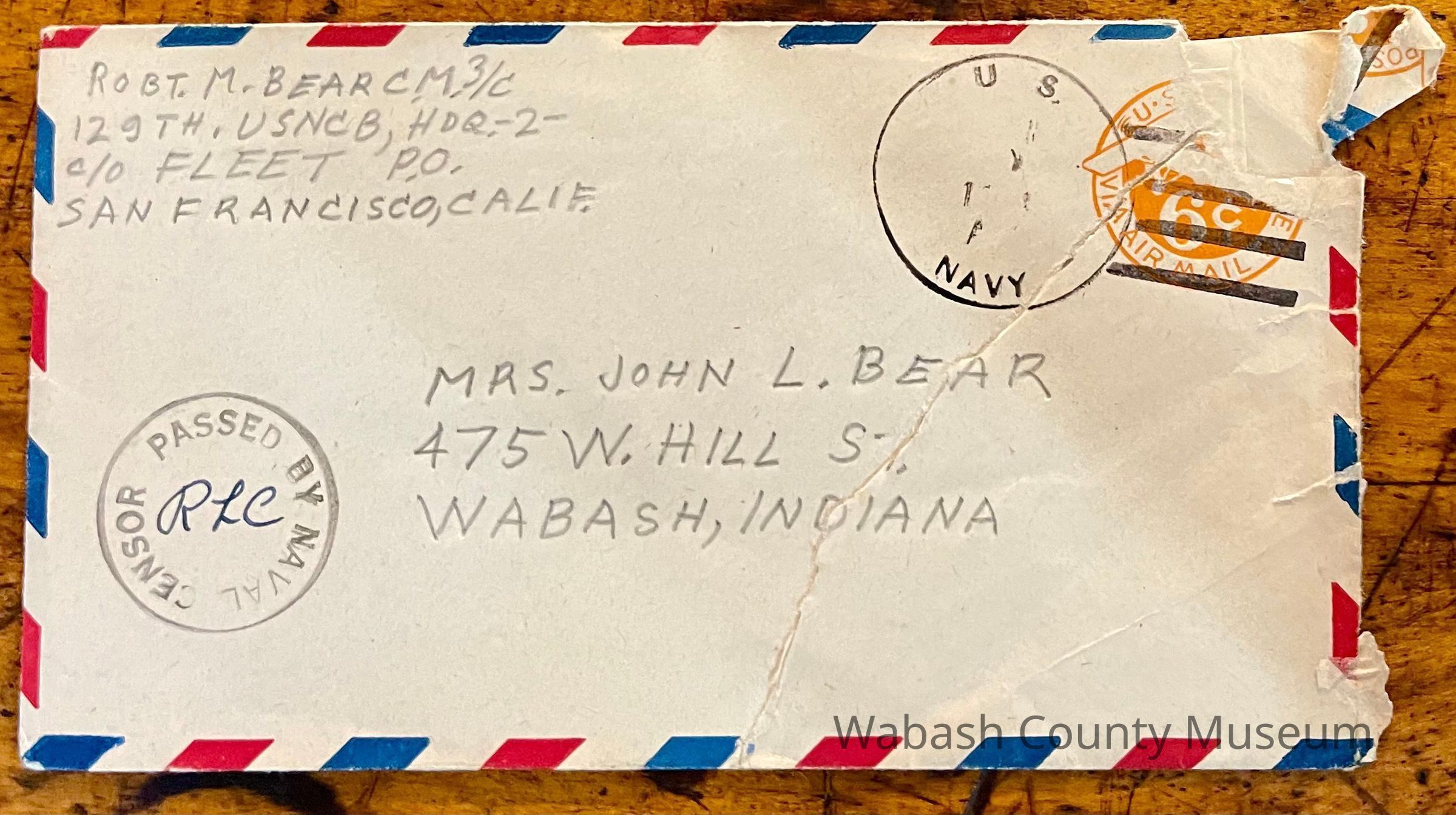 Letter - Robert Milner Bear to Mom, Mrs. John L. Bear (Postmarked "Unreadable")