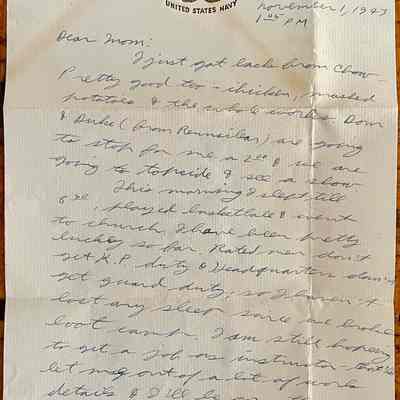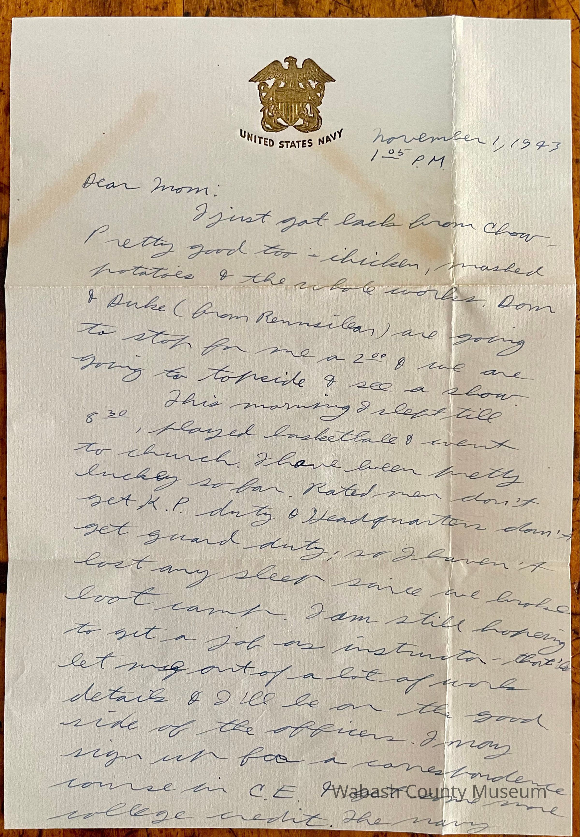 Postmark on envelope reads: US Navy, Nov. 1, 1943 | 11:00AM