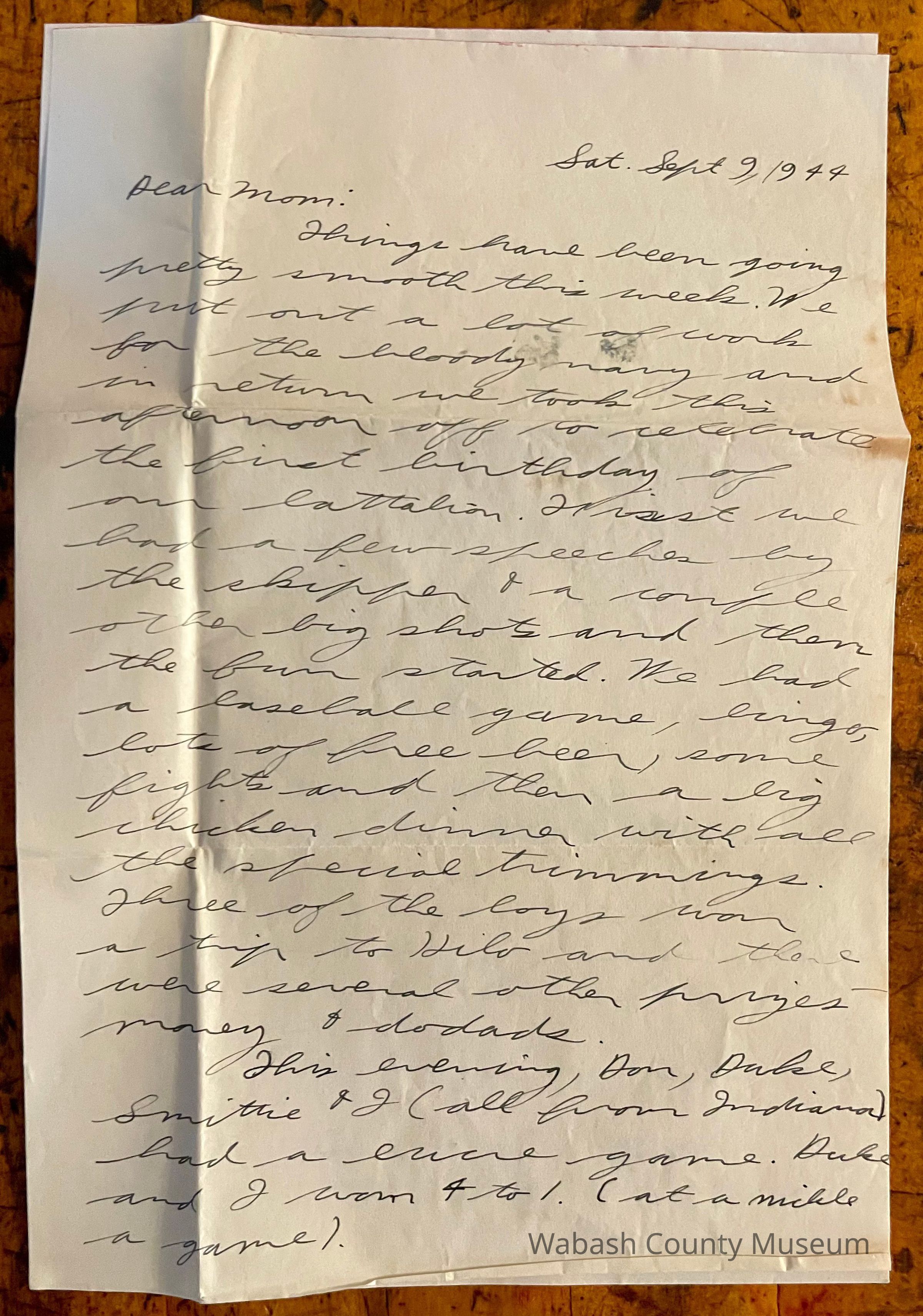 Postmark on envelope reads: US Navy, Sep. 10, 1944 | PM
