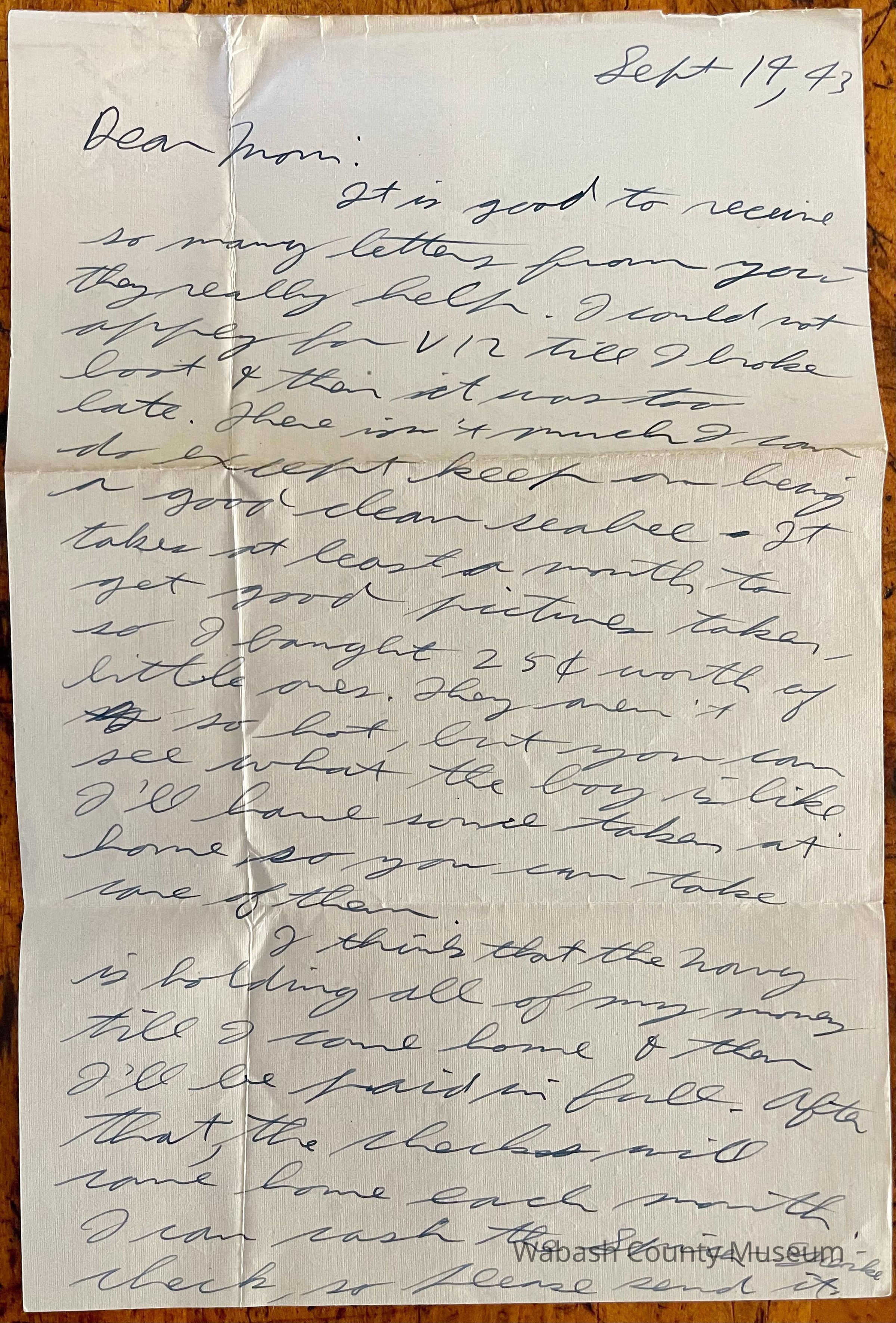 Letter - Robert Milner Bear to Mom, Mrs. John L. Bear (Sept. 14, 1943)Entry/Object ID