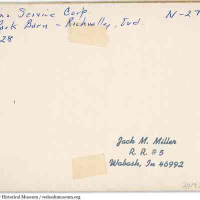Back reads "Indiana Service Corporation / Boyd Park Barn / Richvalley, Indiana / 1928."