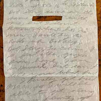 It is hand written, unlined and one page in length and written on both sides