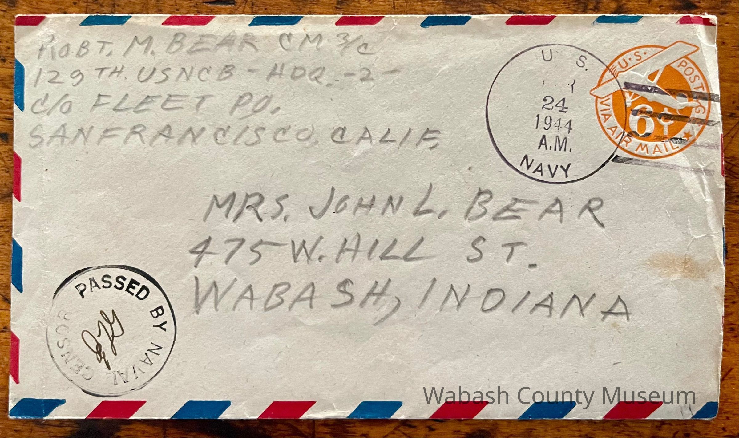 Postmark on envelope reads: US Navy, Mar. 24, 1944