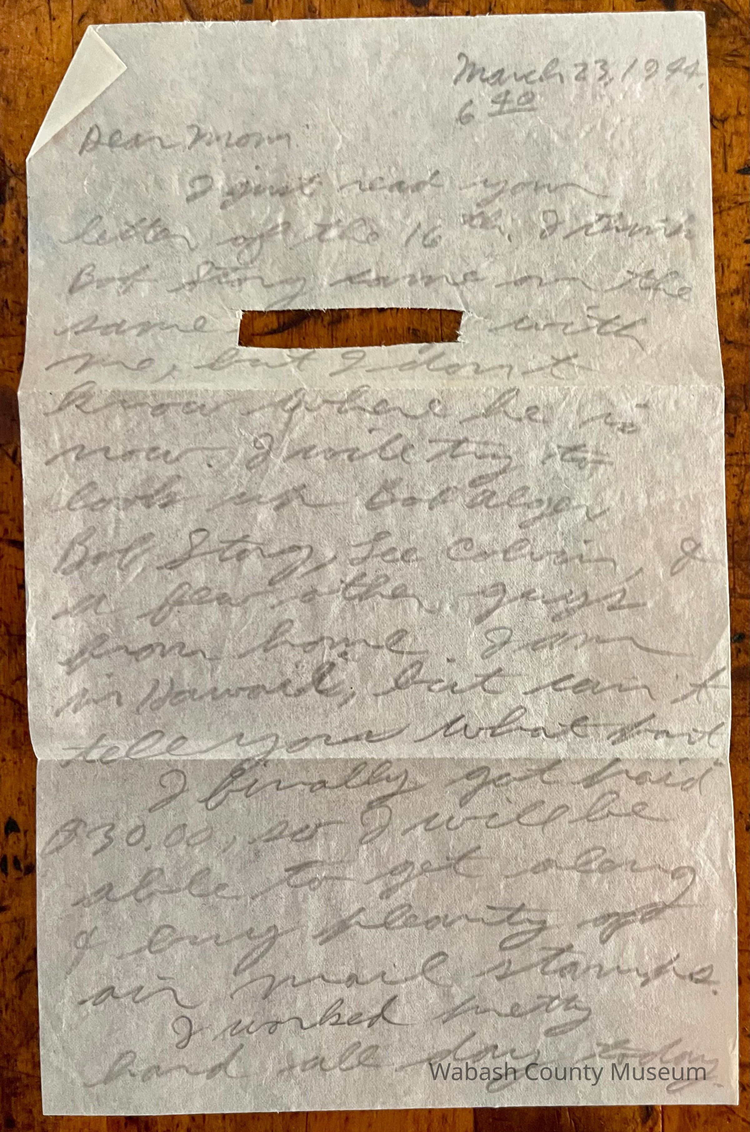 Letter - Robert Milner Bear to Mom, Mrs. John L. Bear (Postmarked Mar. 24, 1944)Entry/Object ID