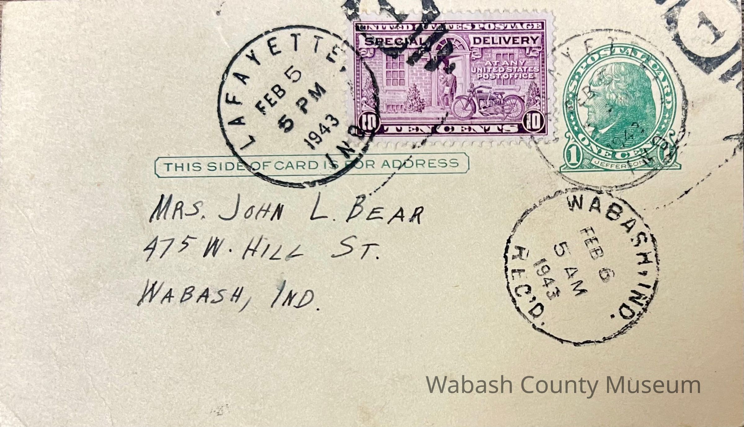 Postcard - Robert Milner Bear to Mom, Mrs. John L. Bear (Feb. 5, 1943)