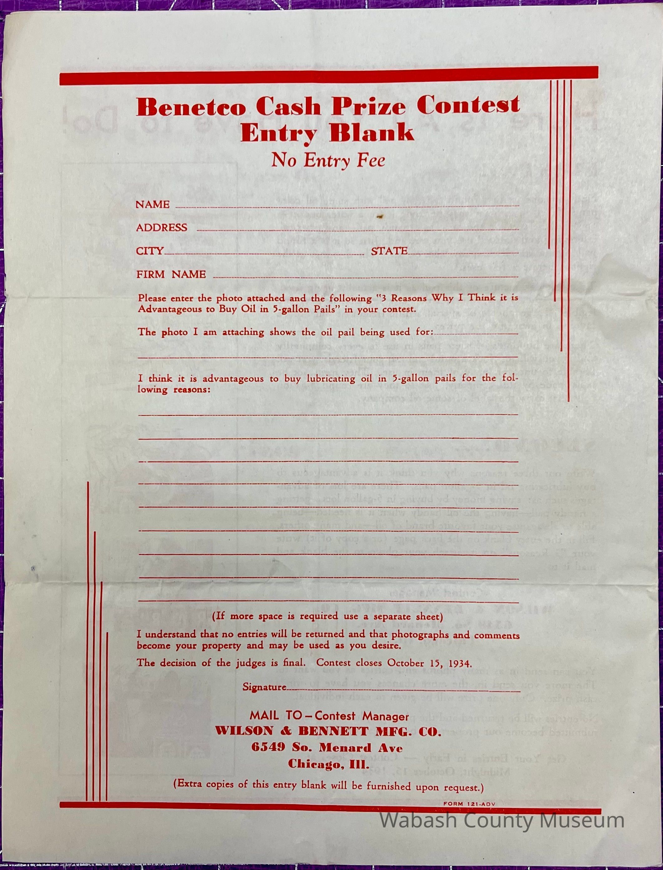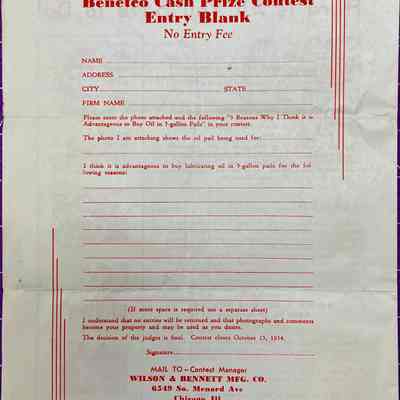 Benetco Cash Prize Contest Entry Form - 1934 Chicago Worlds Fair