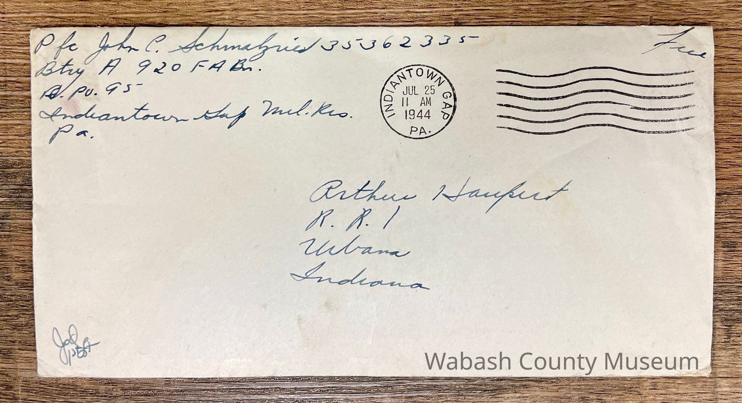 Letter - Pfc. John C, Schmalzried (35362335) to Arthur Haupert (July 22, 1944)Entry/Object ID
