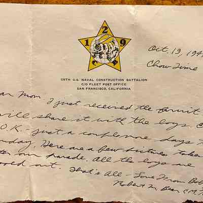 The stationary is lightweight and is one page and written on only one side. The stationary shows at top a five pointed star. In each point is a number or letter that spells out 129CB for the 129th Construction Battalion. In that center of the star is the Seabee emblem of the fighting Bumble Bee over the top of a globe.