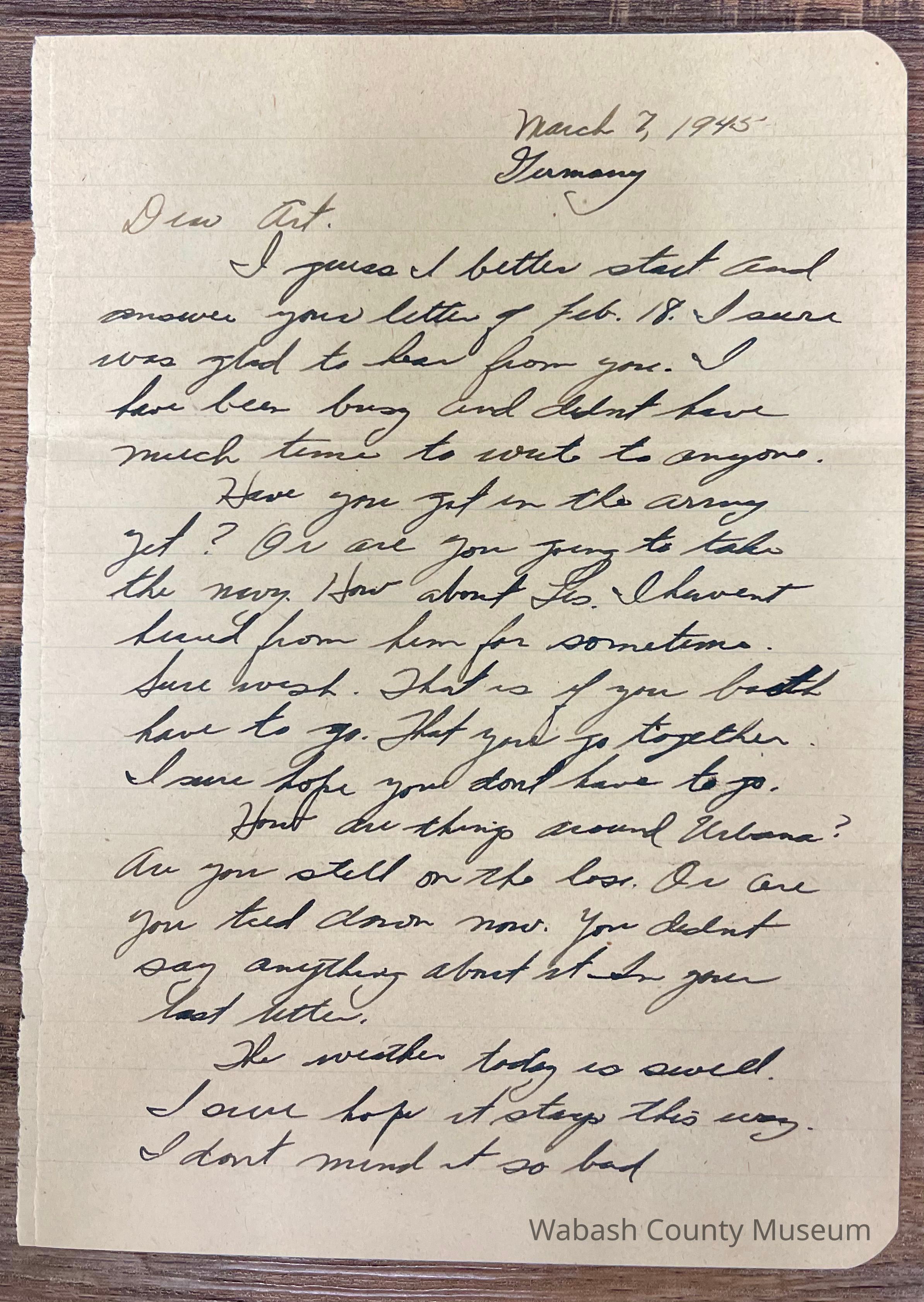 Letter - Pfc. John C, Schmalzried (35362335) to Arthur Haupert (Mar. 8, 1945)