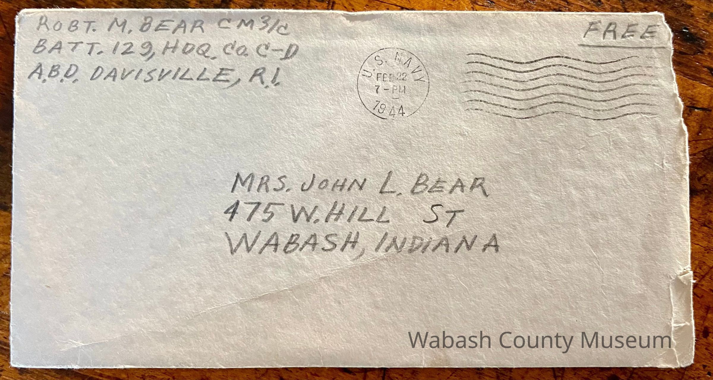 Letter - Robert Milner Bear to Mom, Mrs. John L. Bear (Postmarked Feb 22, 1944 | 7-PM)Entry/Object ID