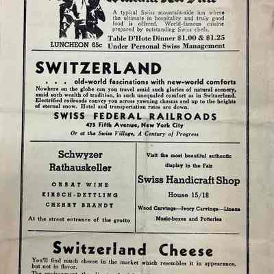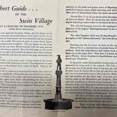 Souvenir explanatory guide given to visitors of the Swiss Village at the 1934 Chicago World's Fair to explain the significance and history of all points of interest in the village.